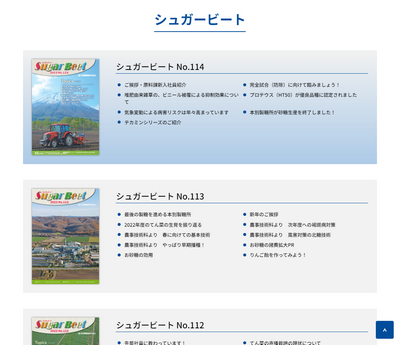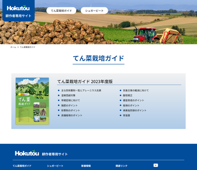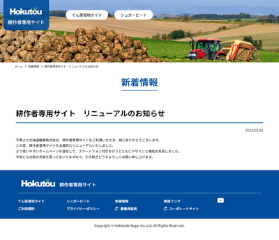 北海道糖業様の耕作者向け情報をまとめた耕作者専用サイトの制作事例です。ページを開いた際のファーストビュー内に主要ページへのリンクバナーを置く事で、利便性を高くしております。